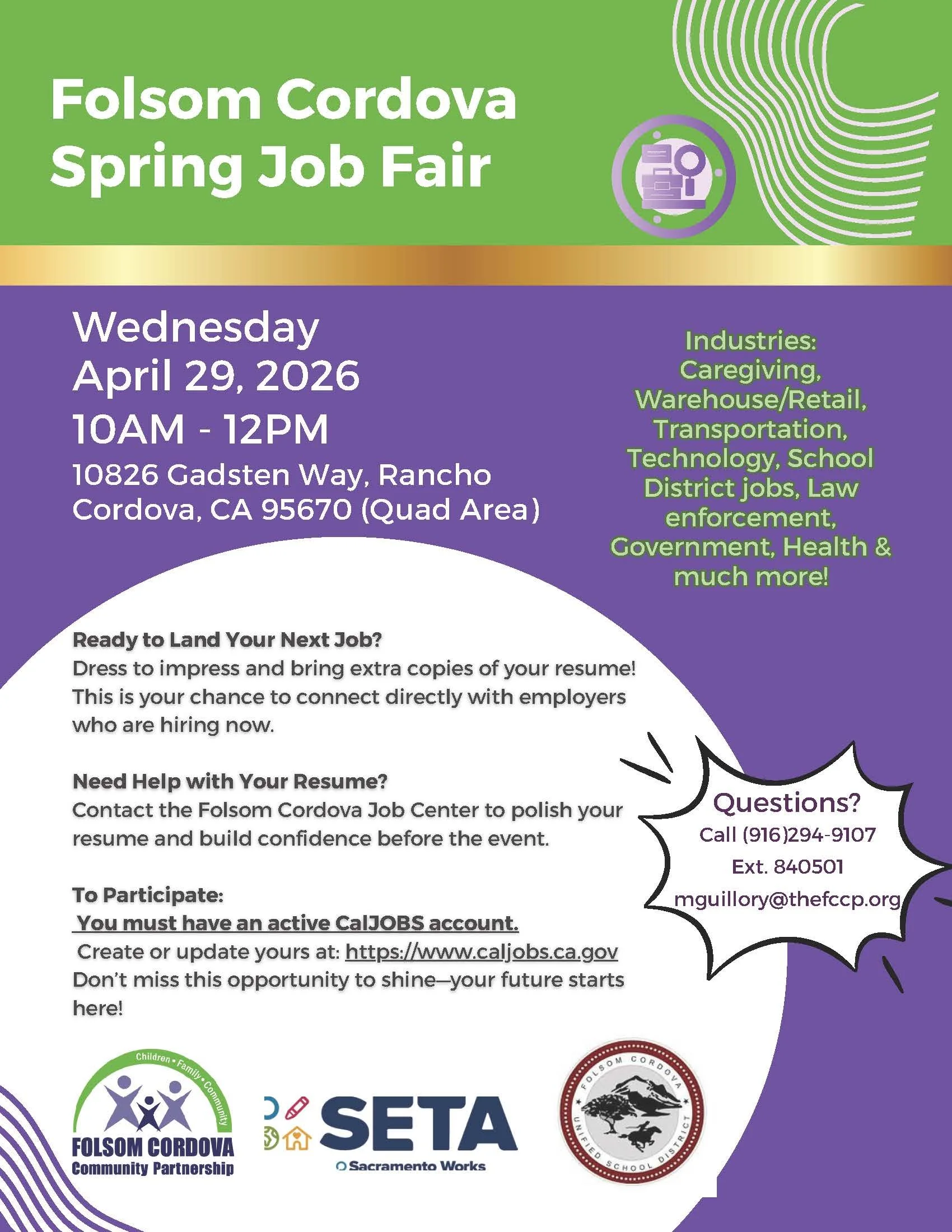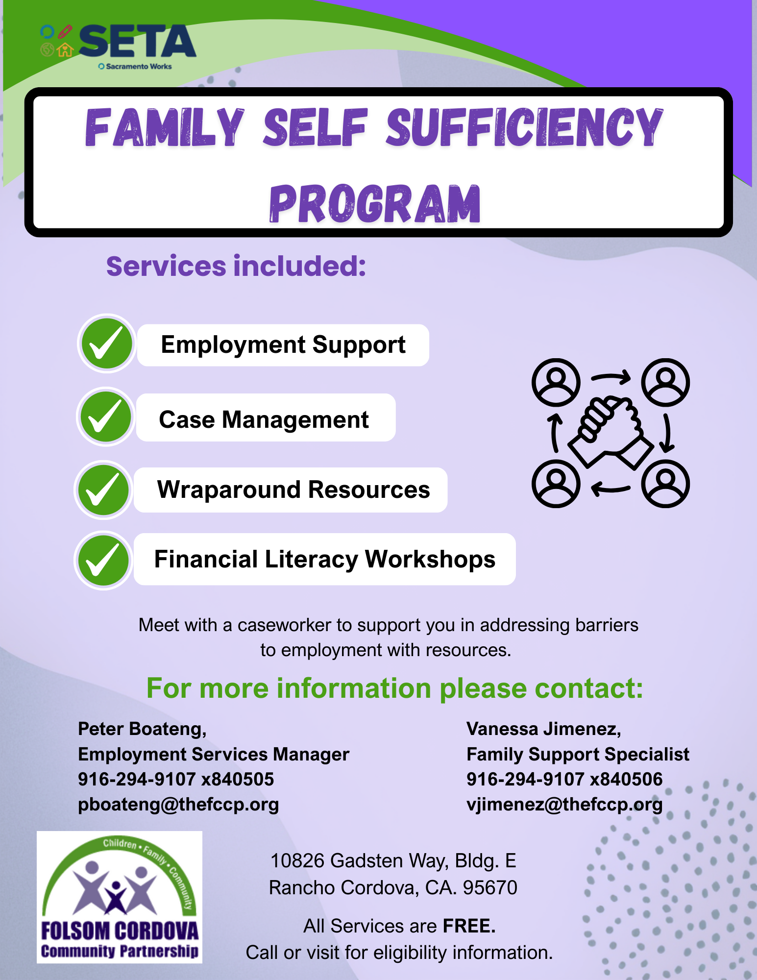 If you would like more information about our Employment Services, please contact our Job Center at 916-294-9107.